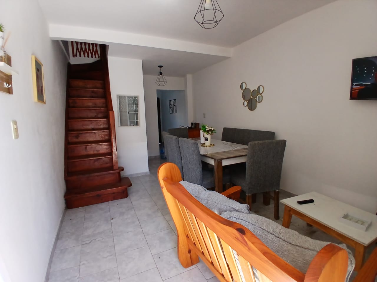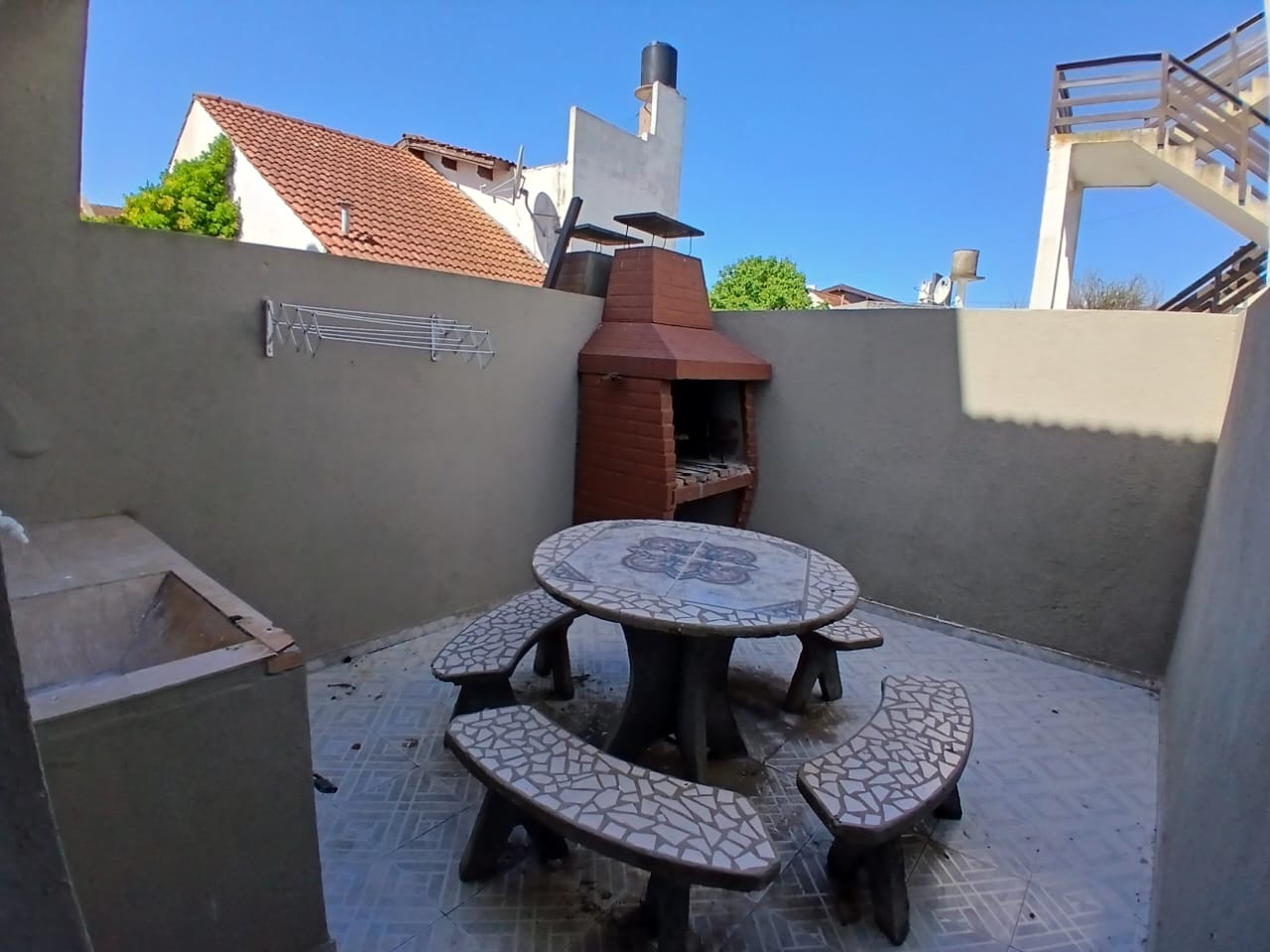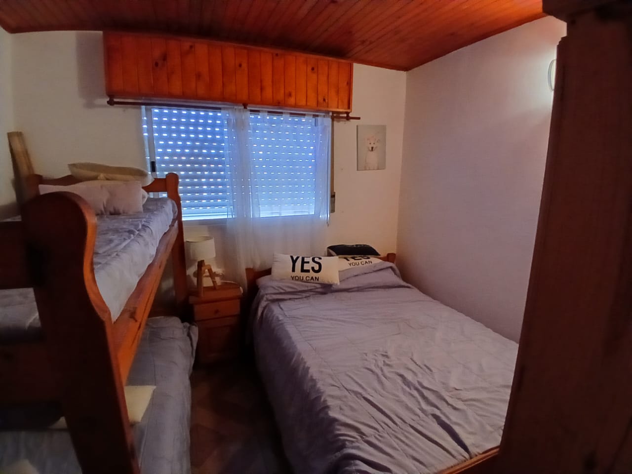Triplex al fondo de 4 ambientes. Consta de Living-comedor con cocina separada, 3 dormitorios, uno con cama matrimonial, otro con una cama cucheta y una cama de 2 pl, mas un dormitorio tipo altillo con una cama de 2 pl, 2 baños, uno completo en planta alta y toilette en PB, espacio vehicular descubierto y patio con parrilla. Cuenta con Microondas, heladera con freezer, 1 Tv Cable, WIFI incluido, 3 ventiladores y gas envasado (a cargo inq). Acepta mascota.