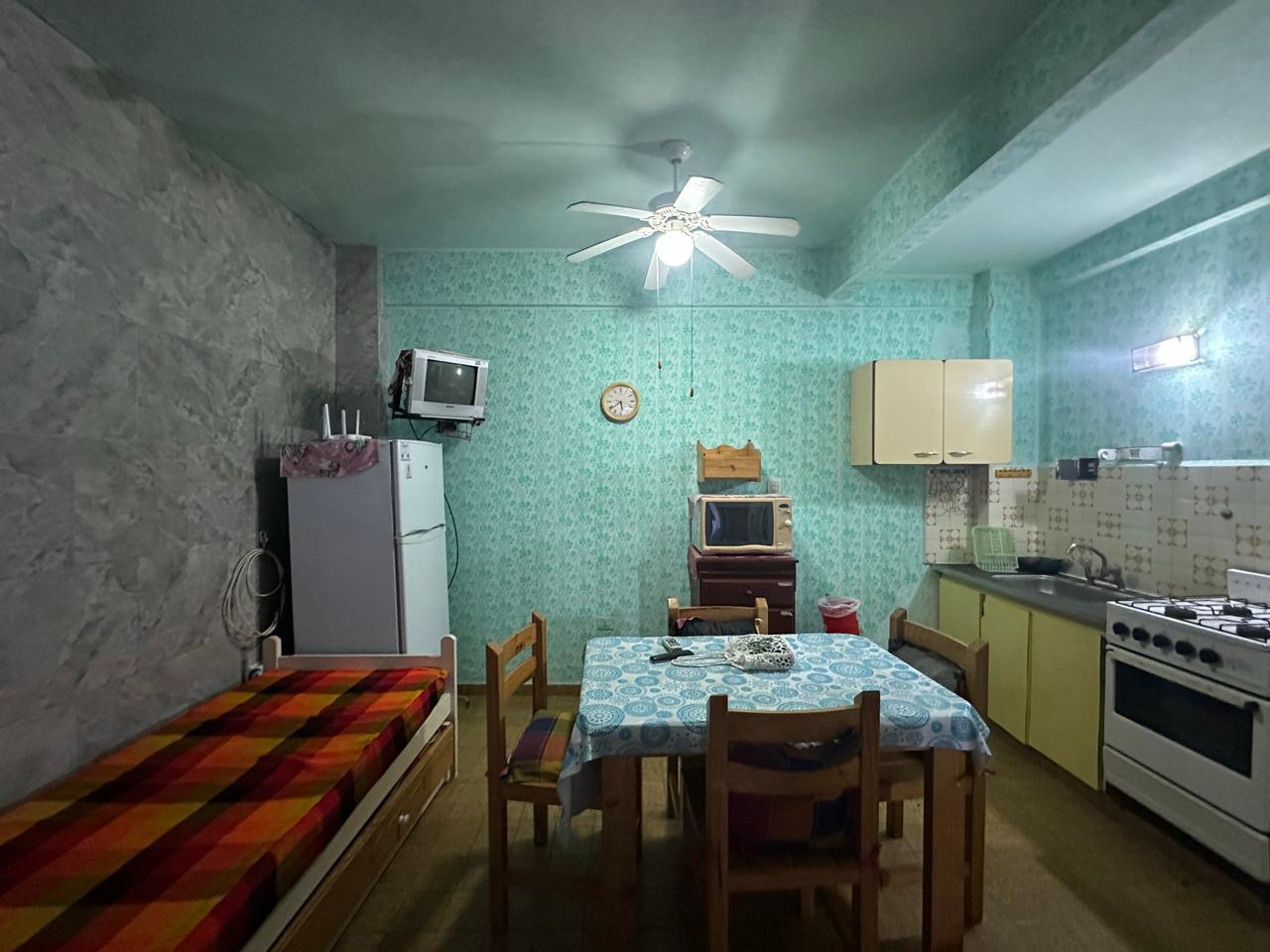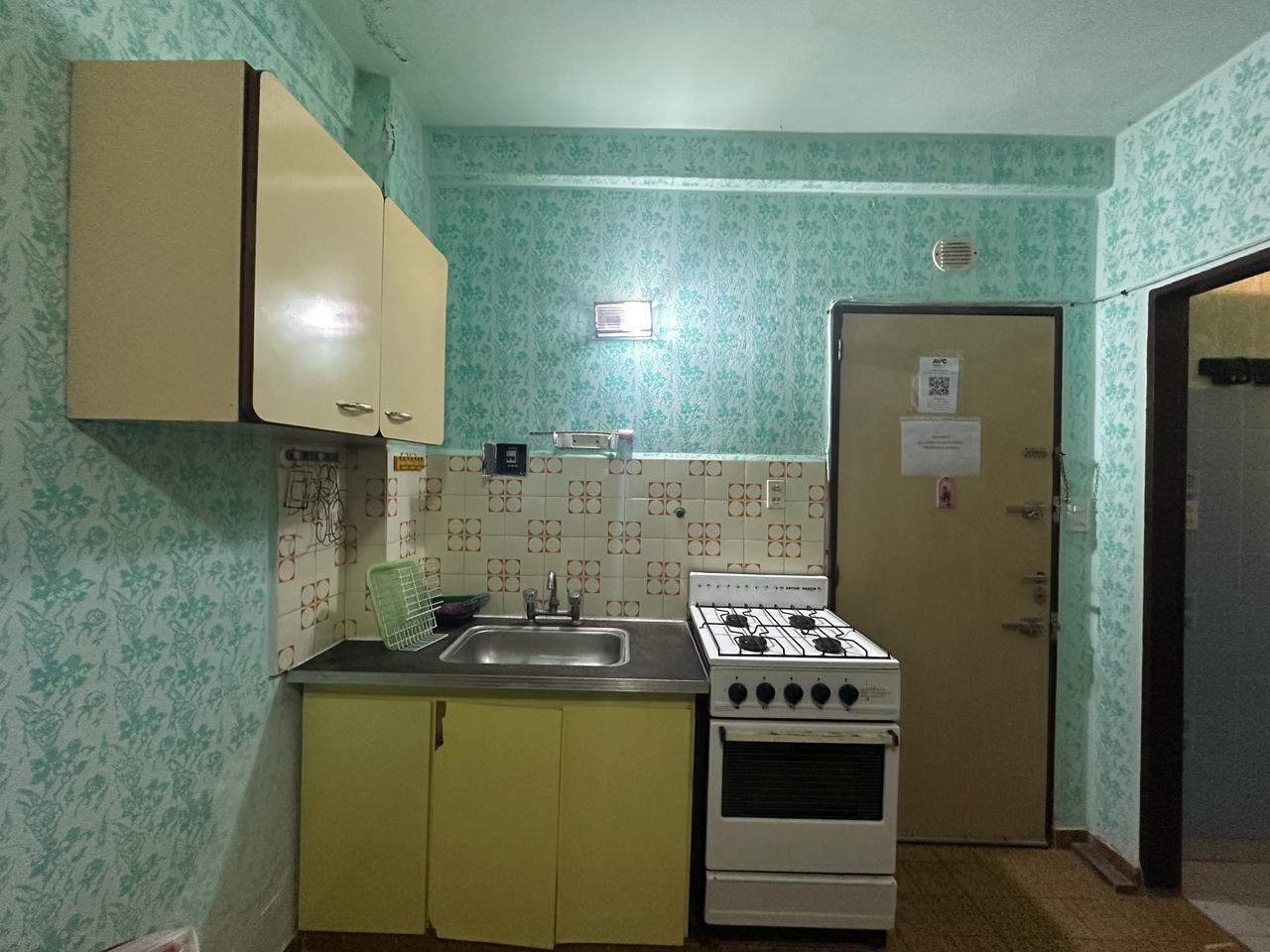 Monoambiente interno en PB. Accedemos al dpto por medio de una puerta de madera, que nos da acceso al ambiente integrado, donde se encuentra la cocina, equipada con mesada de granito con bacha de acero inoxidable, bajo mesada en melamina y salpicadera de azulejos hasta 1,6 mts de altura, seguido el espacio con juego de mesa y sillas, sofa cama y baño completo, equipado con inodoro, bidet, ducha, lavamanos y revestido en azulejos hasta la el cieloraso. Ademas, la unidad cuenta con ventanal que da al pulmon del edificio, patio y terraza compartida.