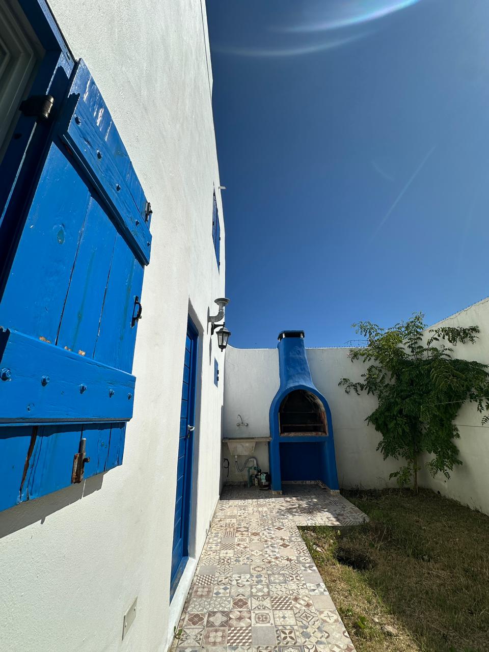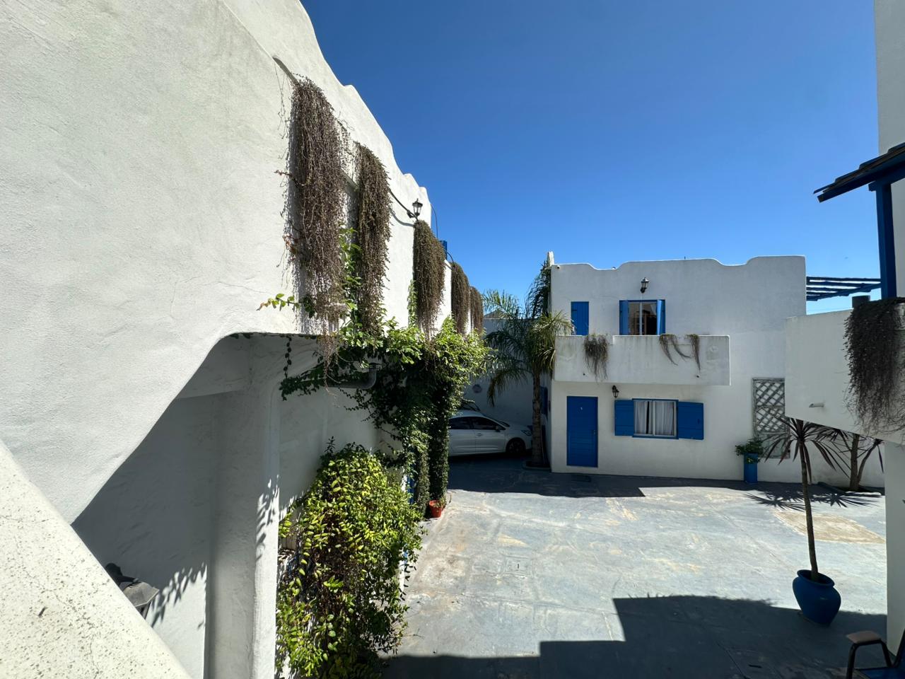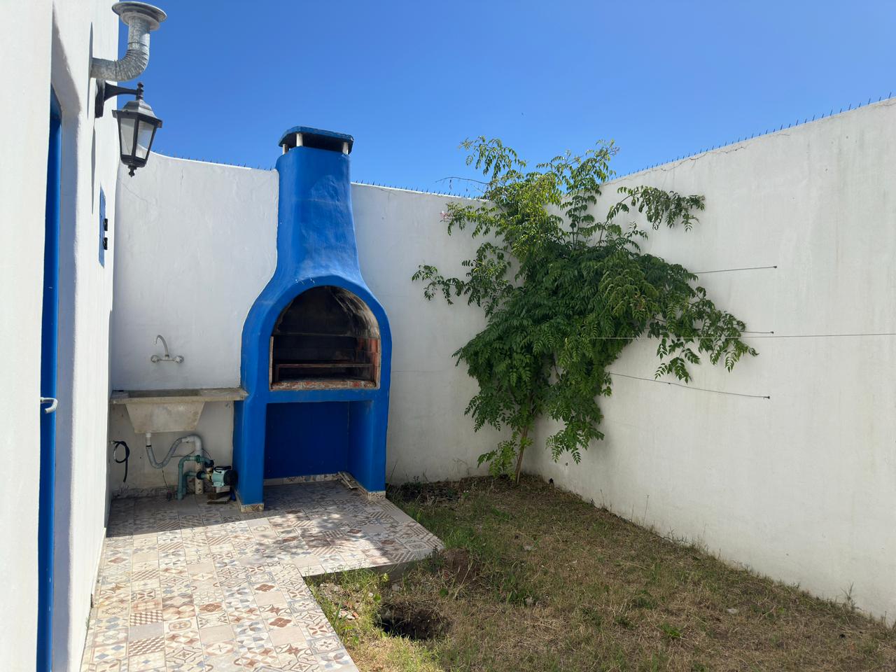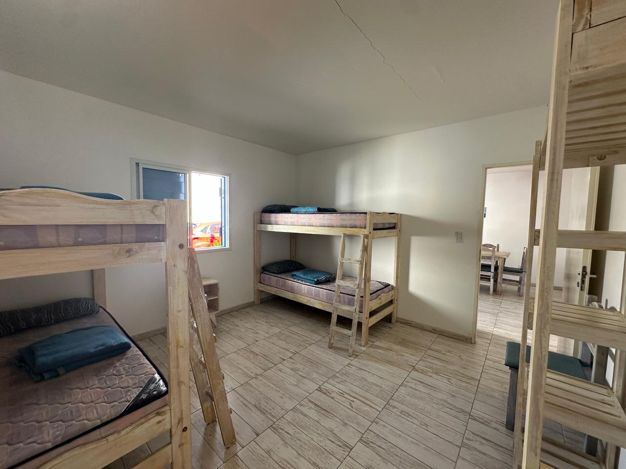 Departamento en PB; Complejo de arquitectura con inspiración en las costas mediterráneas del mar Egeo. 3 ambientes, cocina-comedor con mesada, bajo mesada, bacha de acero inoxidable. Cuenta con dos habitaciones,dormitorio matrimonial con cama de 2 plazas. Seguido de baño completo con ducha, bidet e inodoro, recubierto con azulejos en un estilo pixel art moderno. Siguiente habitación con 2 camas cuchetas y ventana con vista al complejo. Patio con verde Cerrado por los costados con paredones de 2.5M y parrilla.