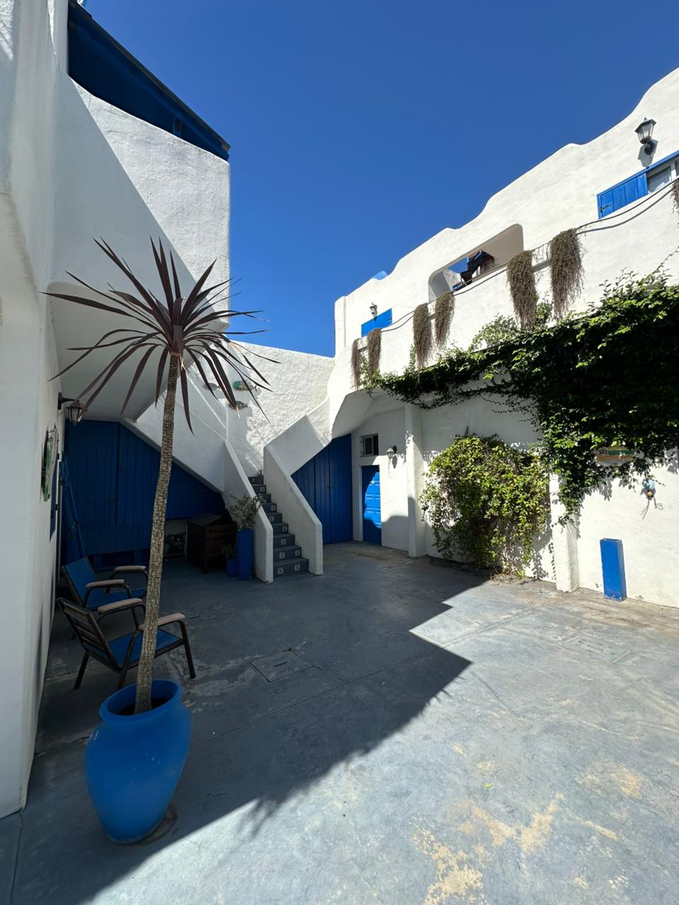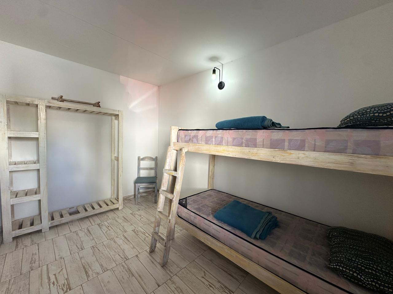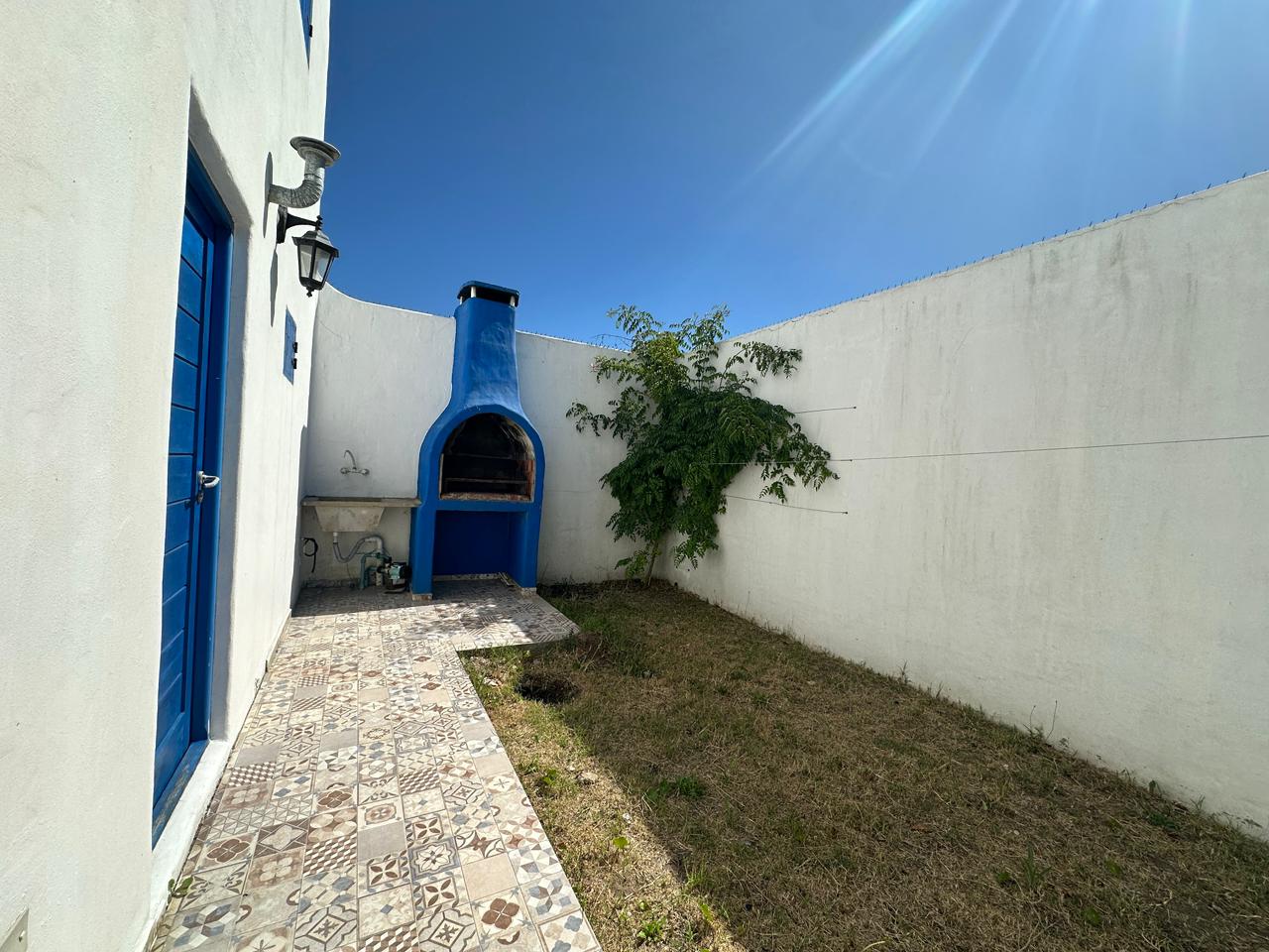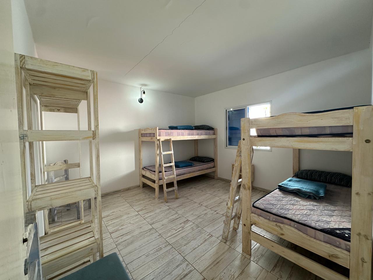 Departamento en PB; Complejo de arquitectura con inspiración en las costas mediterráneas del mar Egeo. 3 ambientes, cocina-comedor con mesada, bajo mesada, bacha de acero inoxidable. Cuenta con dos habitaciones,dormitorio matrimonial con cama de 2 plazas. Seguido de baño completo con ducha, bidet e inodoro, recubierto con azulejos en un estilo pixel art moderno. Siguiente habitación con 2 camas cuchetas y ventana con vista al complejo. Patio con verde Cerrado por los costados con paredones de 2.5M y parrilla.