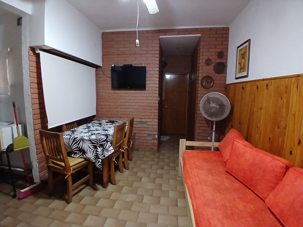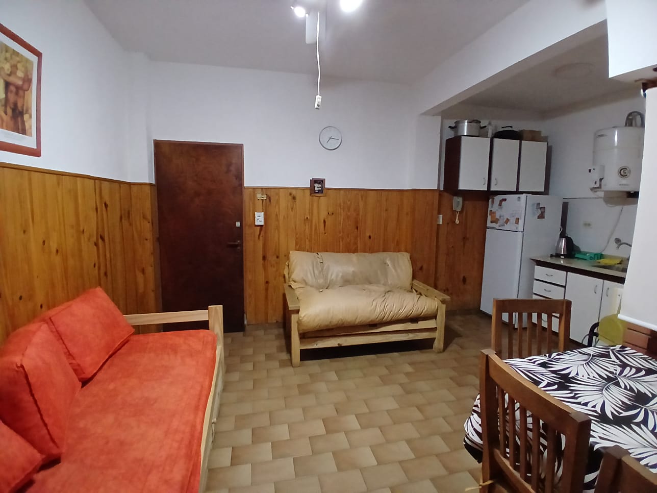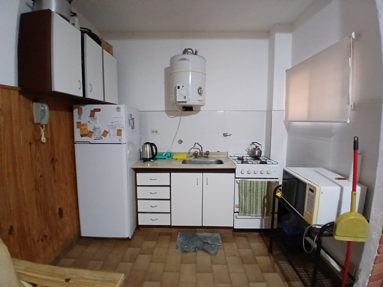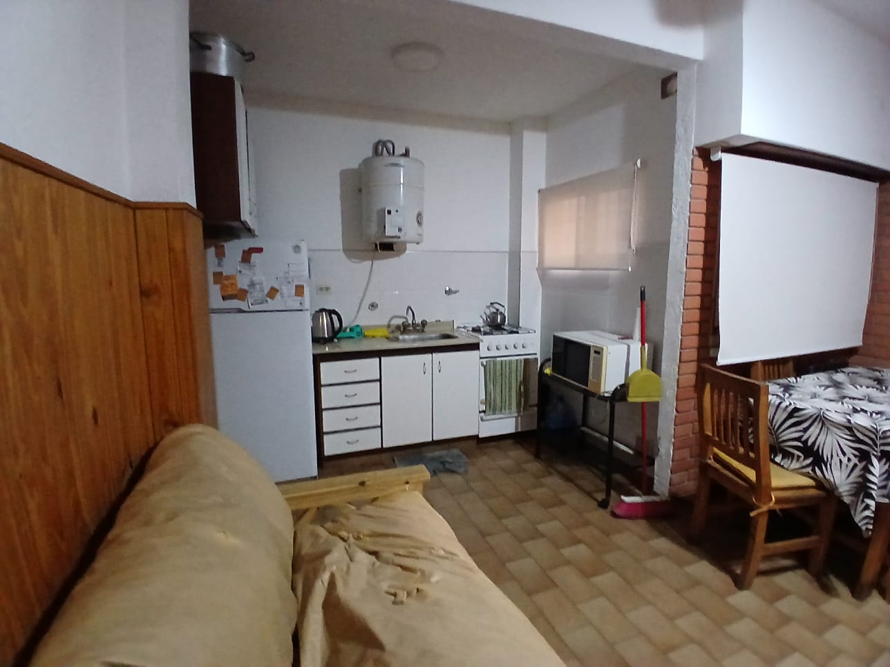 El departamento está ubicado en planta baja por pasillo. Al ingresar a la propiedad nos encontramos con un amplio living comedor con estilo rústico, con pared de ladrillo a la vista y revestimiento de madera en la parte inferior de la pared, piso de baldosas de terracota con espacio para mesa, sillon y sofa cama. cocina individual, equipada con bajo mesada, alacena, bacha de acero inoxidable, cocina a gas, revestimientos cerámicos y ventilación natural. La propiedad cuenta con un pasillo distribuidor con mueble empotrado, que nos lleva al dormitorio equipado con ropero de buen guardado, espacio para cama matrimonial, persiana y piso cerámico. y un baño completo con azulejos blancos en excelente estado.