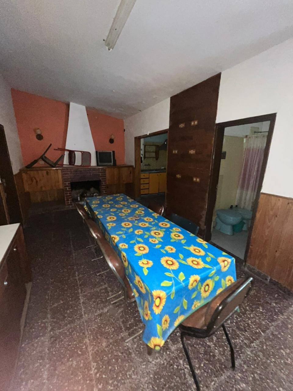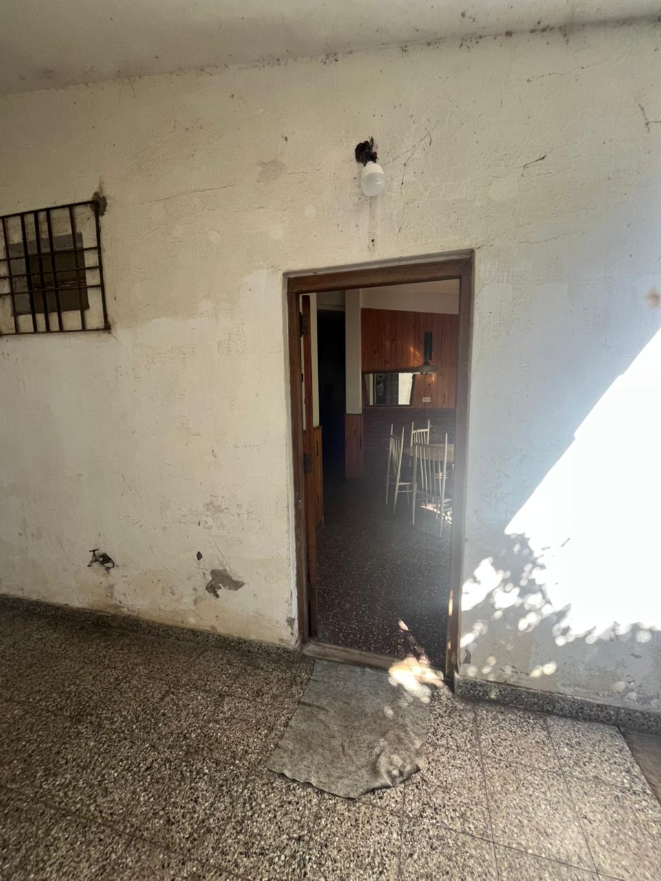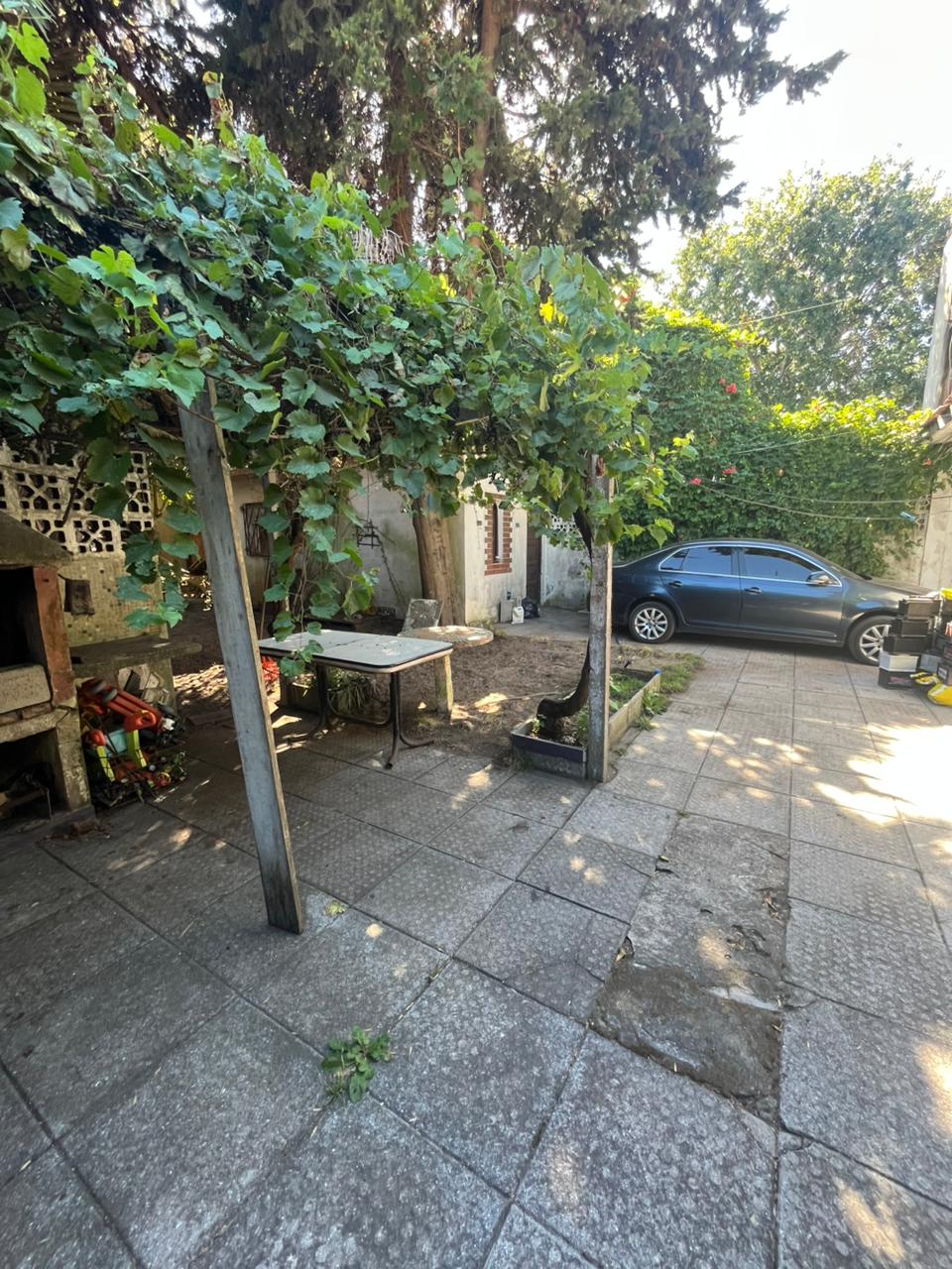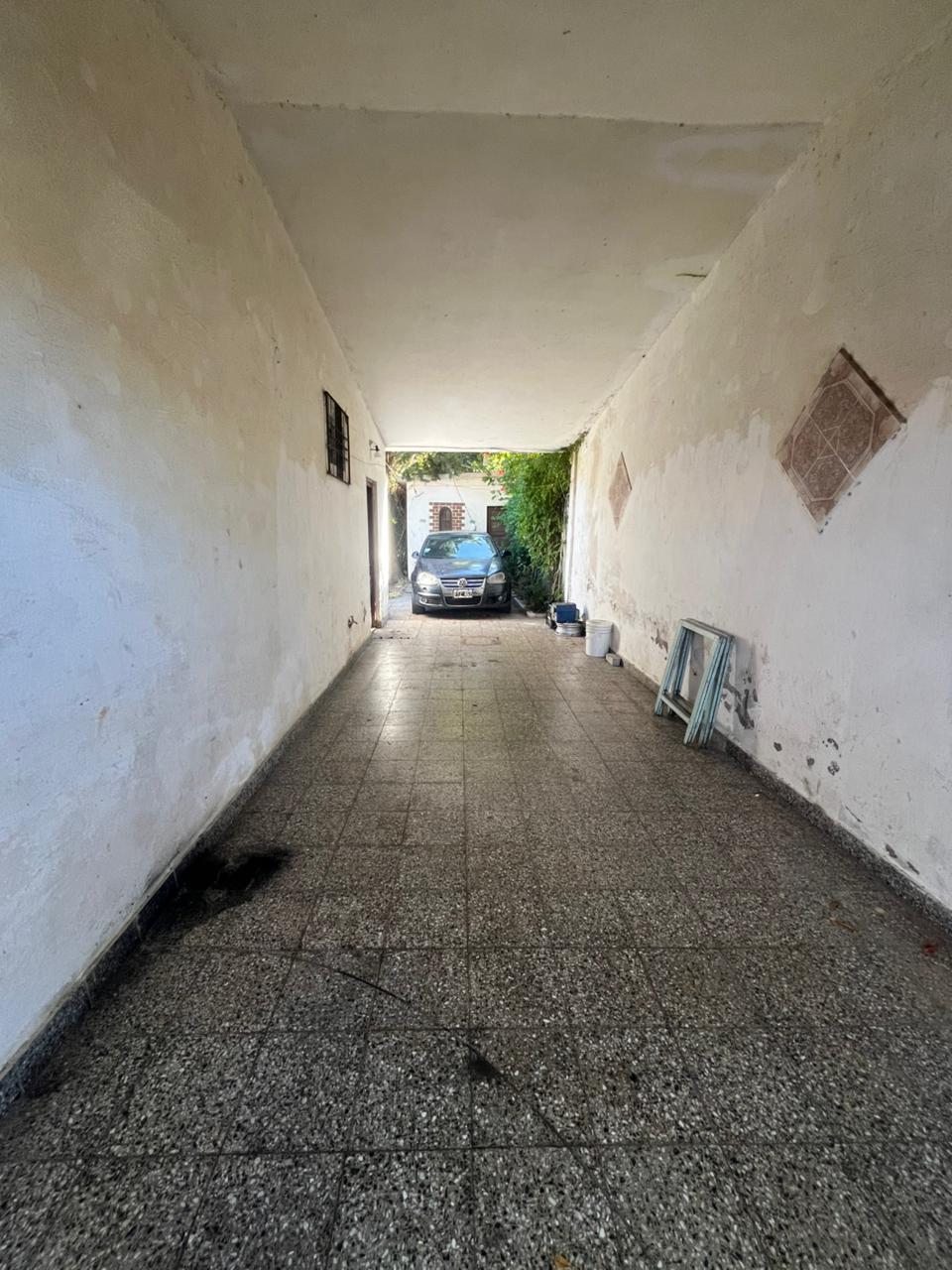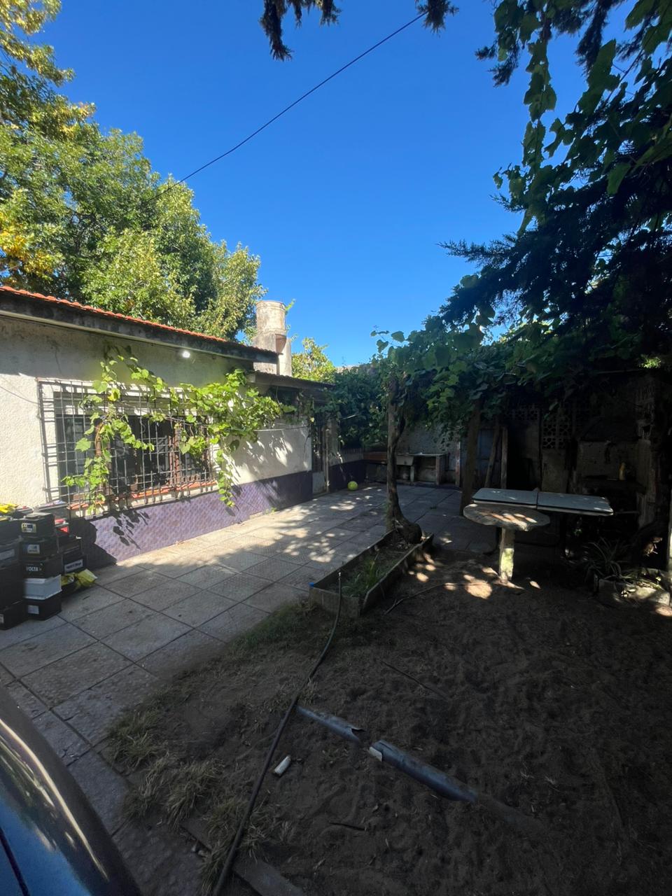 Nos encontramos con una casa al frente con orientación sur todo PB. Para acceder debemos pasar por donde se ubica el espacio vehicular, hacia la izquierda vemos una puerta que nos da el ingreso a la misma, lo primero que nos encontramos es un living comedor muy espacioso equipado con un hogar, este mismo espacio nos distribuye a 3 habitaciones con ventanas hacia el frente, 2 baños y la cocina, contamos con otra puerta que nos lleva al patio equipado con parrilla mesa y una pérgola con enredadera para el sol, frente a esto tenemos el cuarto de fondo amplio y como último contamos con un extenso patio, la propiedad cuenta con rejas en todas sus aberturas.