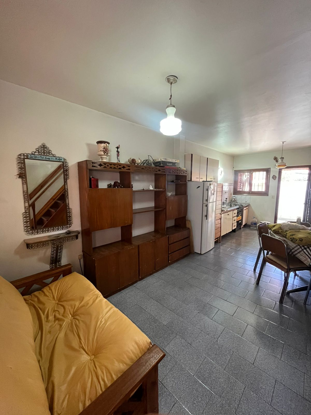 Duplex al frente, de 3 ambientes, a la vista, espacio para el auto al frente techado y cerrado. Al ingreso contamos con living comedor con cocina integrada, ventana hacia el frente mesa y modular; Al fondo de lado izquierdo se dispone la cocina, bacha, alacenas y bajo mesada, ventana lateral con vista al patio con parrilla y lavadero. Frente a la cocina encontramos el baño toilette. Por escalera ubicada de la entrada hacia el frente, donde llegamos al primer piso donde tenemos un hall distribuidor que conecta a las 2 piezas y el baño, ubicamos habitación matrimonial cerrada integrada con 1 cama 2 plz, ropero y ventana que da al frente luego tenemos la segunda habitación que cuenta con 2 camas de 1 plz y ventana hacia la parte trasera de la propiedad, como último de este piso contamos con baño completo.