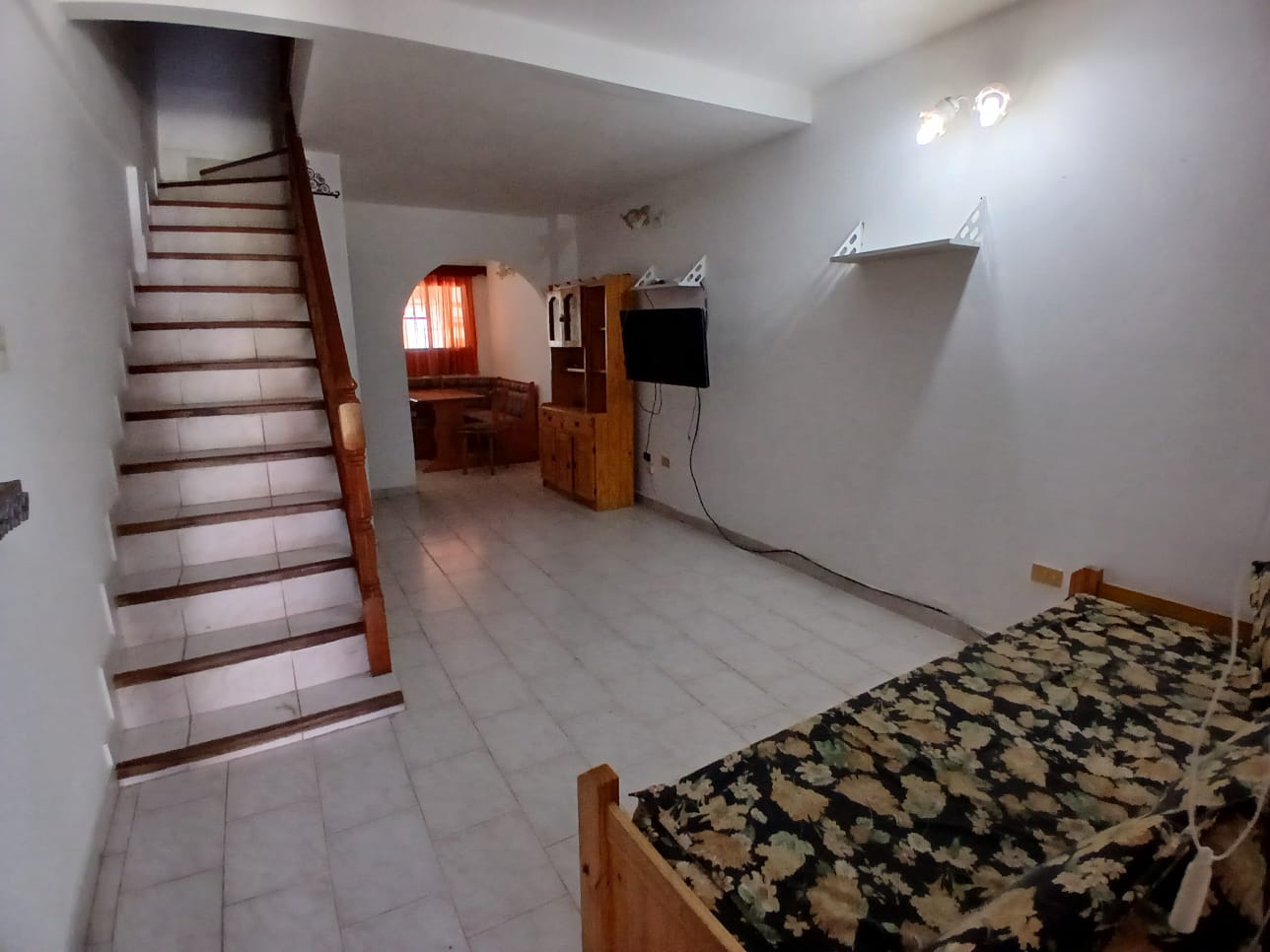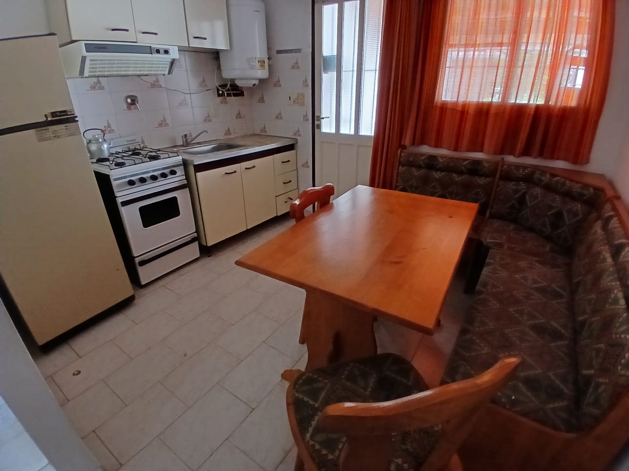 Dúplex de 3 ambientes. Consta de un living con un sillon cama, una cocina-comedor, 1 baño completo y 1 toilette en planta alta, 2 dormitorios cerrados, uno con cama matrimonial y otro con 2 camas de 1 plaza, y un colchon aparte de 1 plaza. Ademas cuenta con 2 TV con cable y WIFI incluido, heladera con freezer, 1 ventilador, gas envasado (a cargo del inquilino), cochera cubierta y patio trasero cubierto y descubierto con parrilla. Acepta mascota.