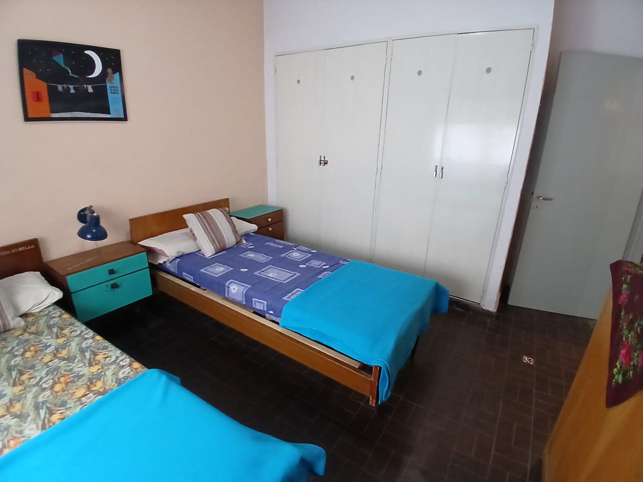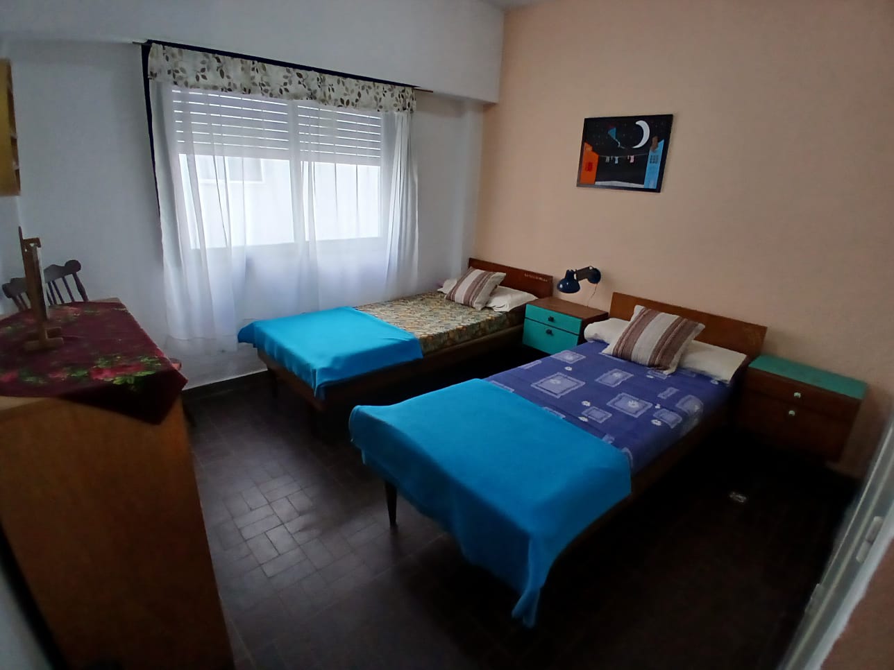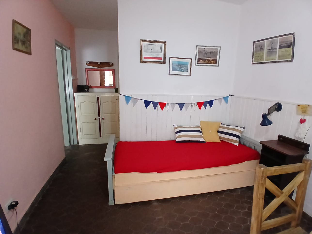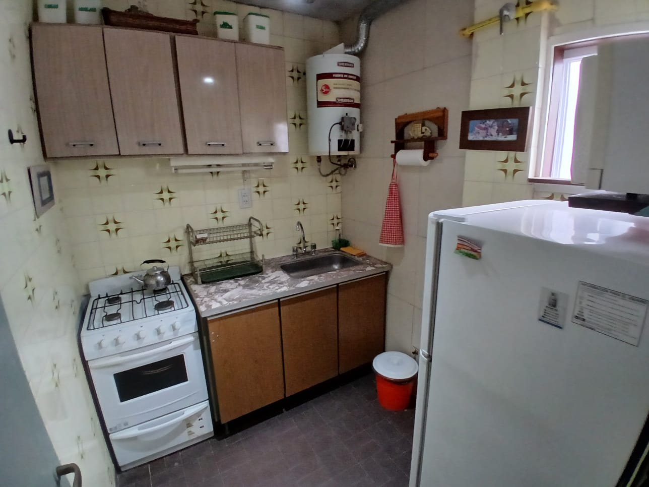 Departamento de 2 ambientes para 4 personas, con un dormitorio cerrado con 2 camas de 1p, NO TIENE MATRIMONIAL, cama de una plaza con carrito en living comedor. directv recargable. Cocina separada, heladera con freezer, microondas. Garrafa (a cargo del inq). Acepta mascota.