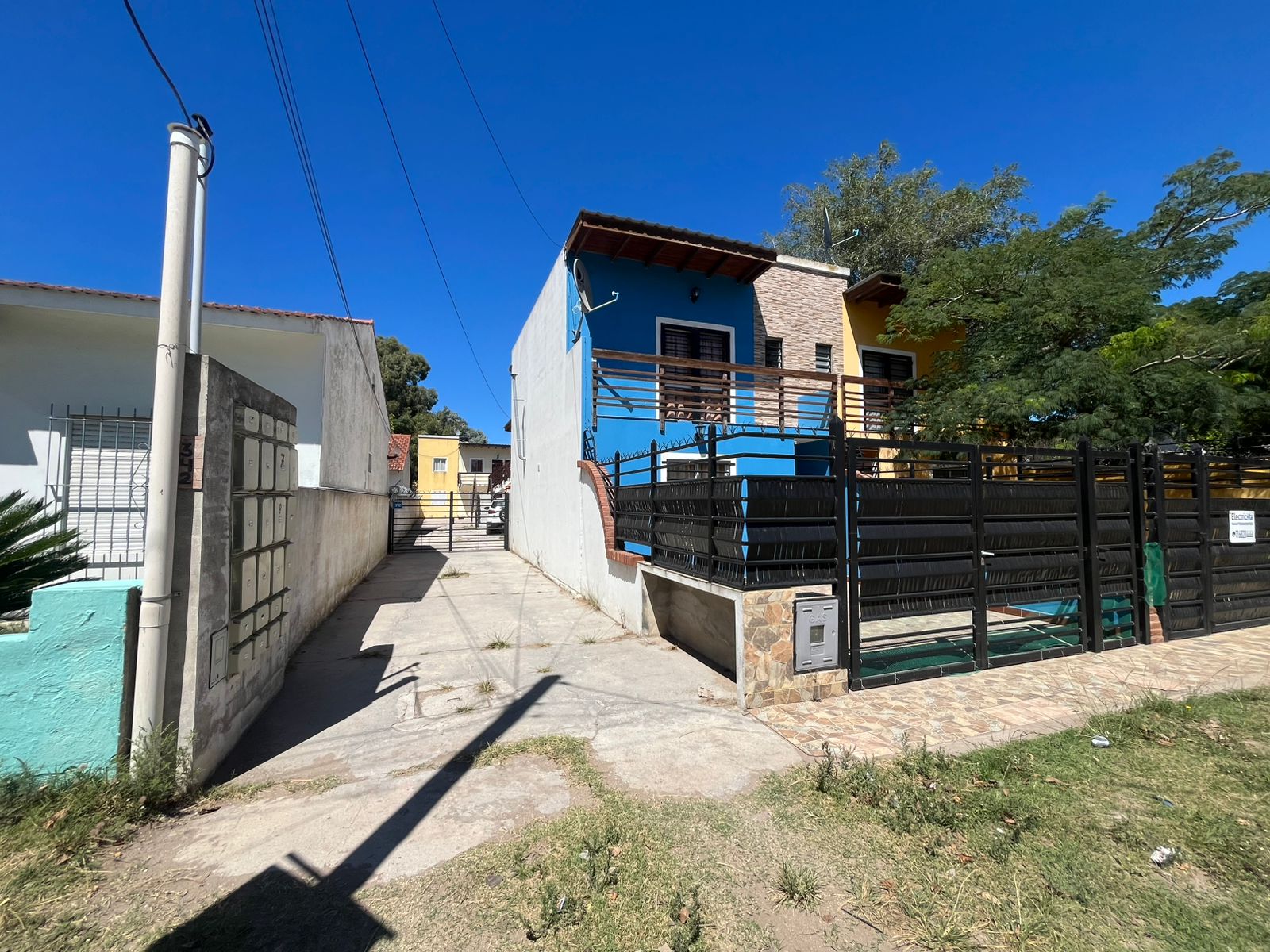 Las paredes del frente de la propiedad se encuentran pintadas de un color verde con una pintura texturizada. Las ventanas de la misma, al igual que en las habitaciones, son de aluminio y todas las aberturas cuentan con rejas.