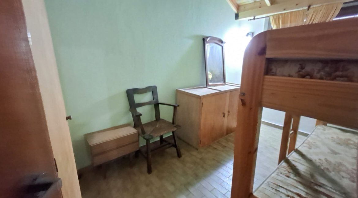 Casa de 3 ambientes sola en lote. Al llegar a la propiedad nos encontramos con la entrada vehicular la cual es descubierta y da acceso al patio. Cuando nos adentramos a la propiedad el primer espacio con el que nos encontramos es el comedor el cual arranca en la puerta y se extiende en un pasillo que lleva a la cocina, en el comedor no podemos encontrar con un sofá cama a frente a la televisión; Si seguimos adelante nos encontramos con el pasillo en cual hay dos muebles ideales para guardar cosas personales y/o mercadería. Al terminar el pasillo podemos nos vamos a encontrar con la mesa junto a sus silla y podemos ver la cocina, un espacio pequeño pero ideal para las tareas gastronómicas. Si cuando entramos a la propiedad nos dirigimos hacia la izquierda nos vamos a encontrar con el baño el cual cuenta con todos los artefactos y las dos habitaciones, Una de ellas es la habitación matrimonial la cual cuenta con un ropero, 2 mesas de luz y una ventana con vista al frente. La otra habitación cuenta con una cama cucheta con carrito, una cajonera, un espejo y tiene ventana con vista al patio. La propiedad aparte de contar con un patio amplio y verde, también tiene un pequeño espacio cerrado donde se encuentra la parrilla y se puede acceder por una puerta que se encuentra en la cocina o la entrada exterior.