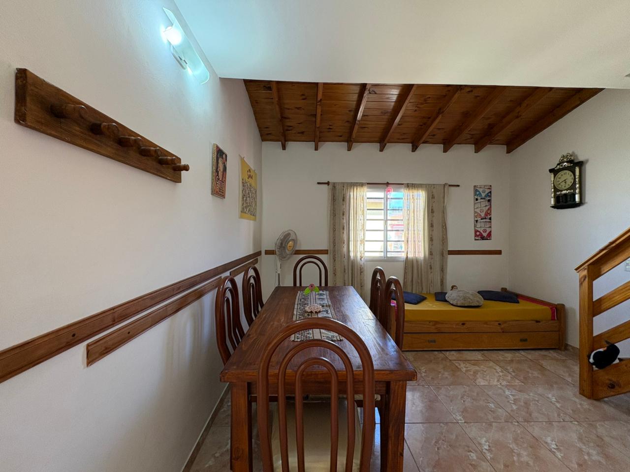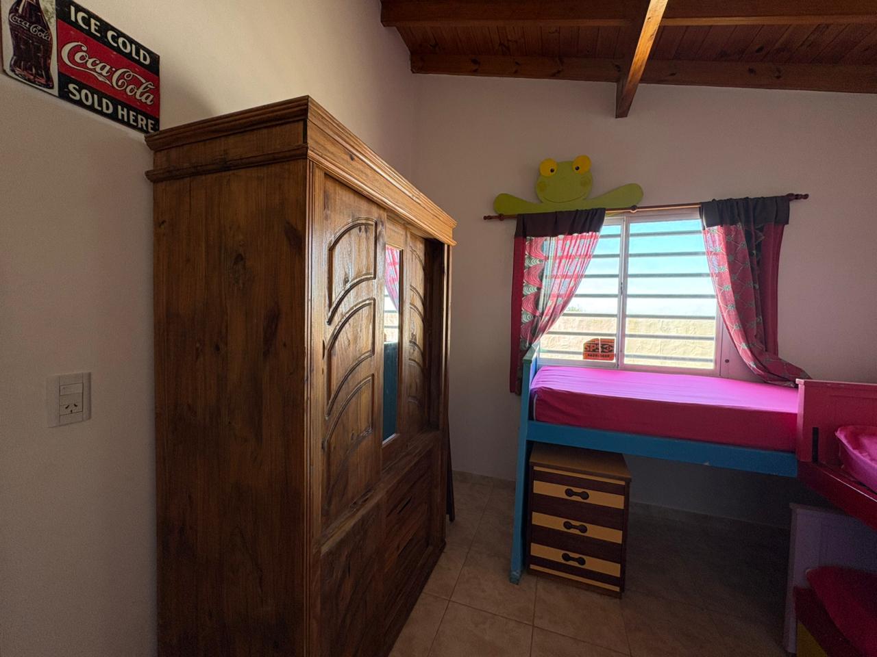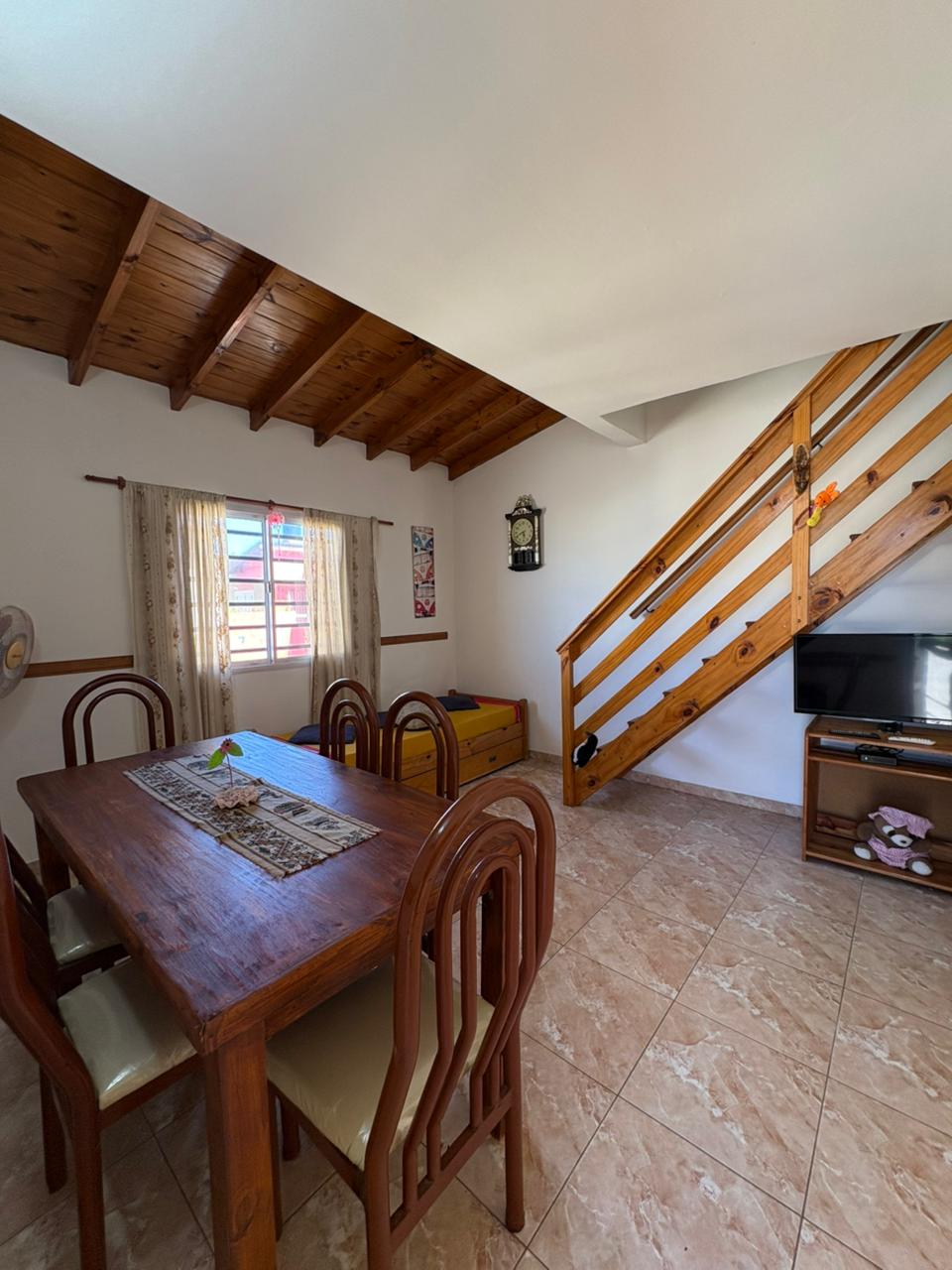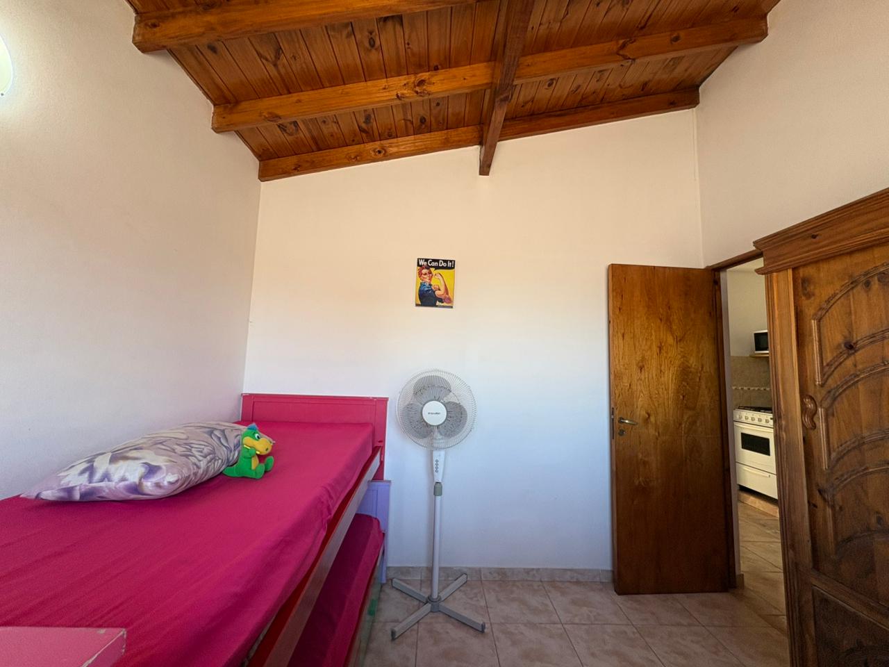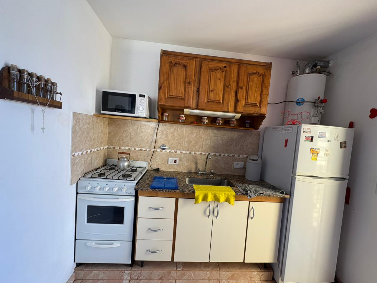 Ingresamos al complejo por medio de un portón de madera de aproximadamente 1,80 m de altura, que da acceso al camino vehicular común.Nos dirigimos al segundo bloque constructivo y accedemos al primer piso por escalera de mampostería. Al llegar, del lado izquierdo, encontramos el sector de parrilla, una bacha de cemento y, por debajo, un gabinete destinado a la conexión de garrafa.El ingreso a la propiedad se realiza a través de una reja de barrotes color negro y, a continuación, una puerta de madera en tono roble oscuro. Al ingresar, hacia la izquierda, se ubica la primera habitación con orientación sureste, cuyas medidas aproximadas son de 2,50 x 2,50 m.Continuando, se desarrolla la cocina integrada, equipada con mesada, bajo mesada, bacha de acero inoxidable, alacena, heladera y cocina artefacto. Seguido de este espacio, se encuentra el living-comedor, que se destaca por su muy buena iluminación natural.A continuación, se dispone el baño completo, revestido en cerámicos hasta una altura aproximada de 2 metros.Desde el living-comedor accedemos, mediante una escalera de madera de pino en tono roble oscuro, al segundo piso, donde se encuentra la habitación principal, con medidas aproximadas de 3,00 x 2,80 m. Este ambiente cuenta con salida a un balcón con vista al mar, ideal para disfrutar de la luz natural y el entorno.