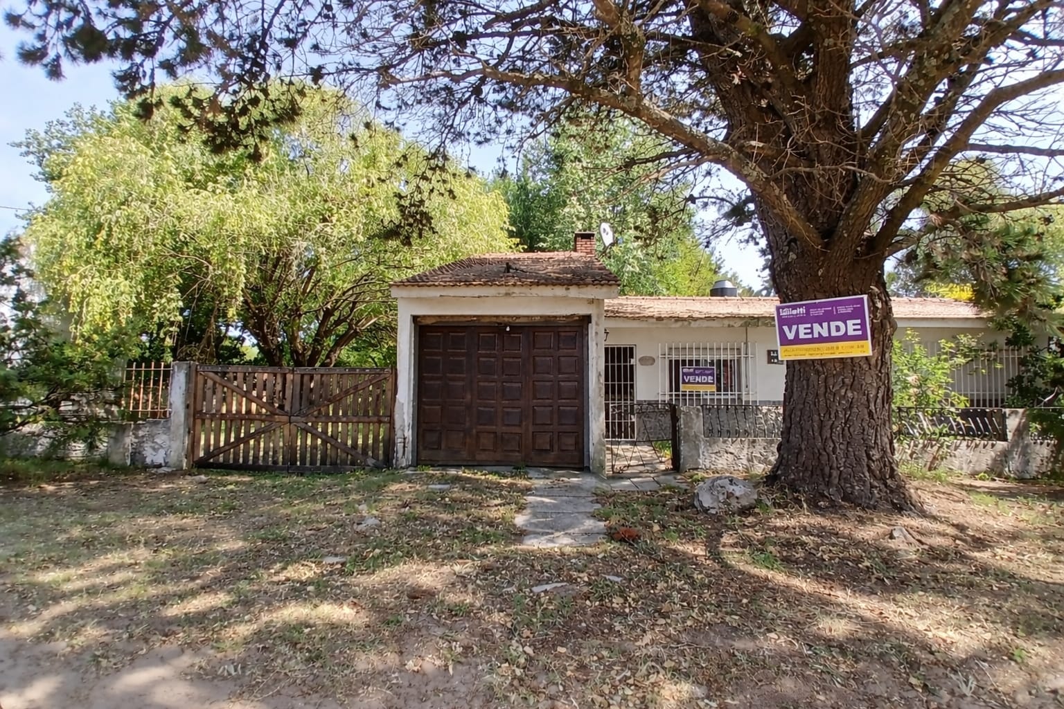 En el exterior posee jardín arbolado, garaje cubierto con portón y espacio libre dentro del lote, con potencial para ampliaciones o mejoras.