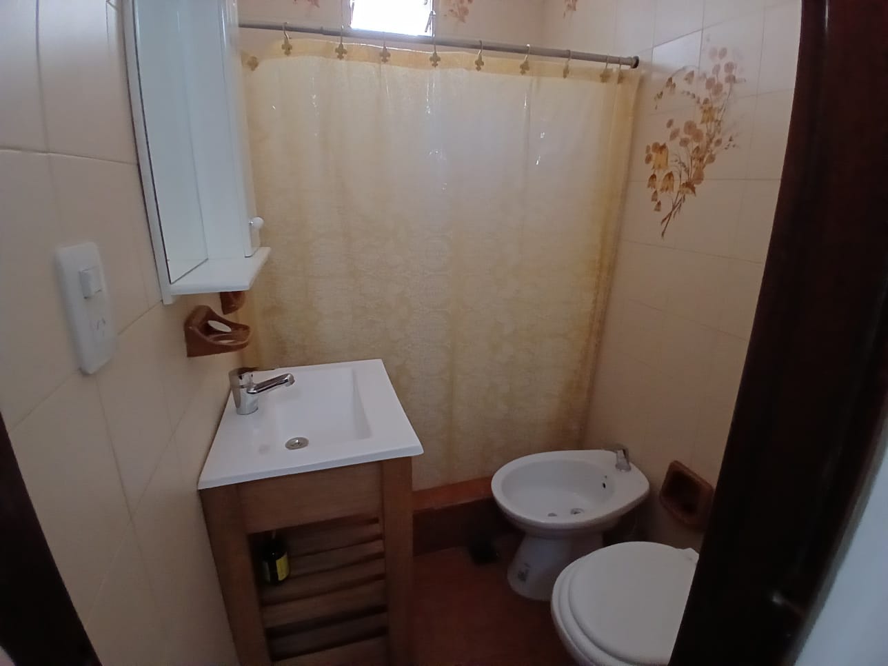 Duplex de 3 ambientes, ubicado al frente. Consta de un living comedor con un sillon cama, 2 dormitorios cerrados, uno con cama matrimonial y un sillon cama, y otro con cama cucheta y una cama de 1 plaza. Cuenta con baño completo en el 1er piso y toilette en planta baja. Ademas consta de 1 TV con DirecTV y Wifi recargable (a cargo del inq), heladera con freezer, microondas, ventiladores, patio con parrilla y entrada vehicular descubierta. Acepta mascota pequeña.