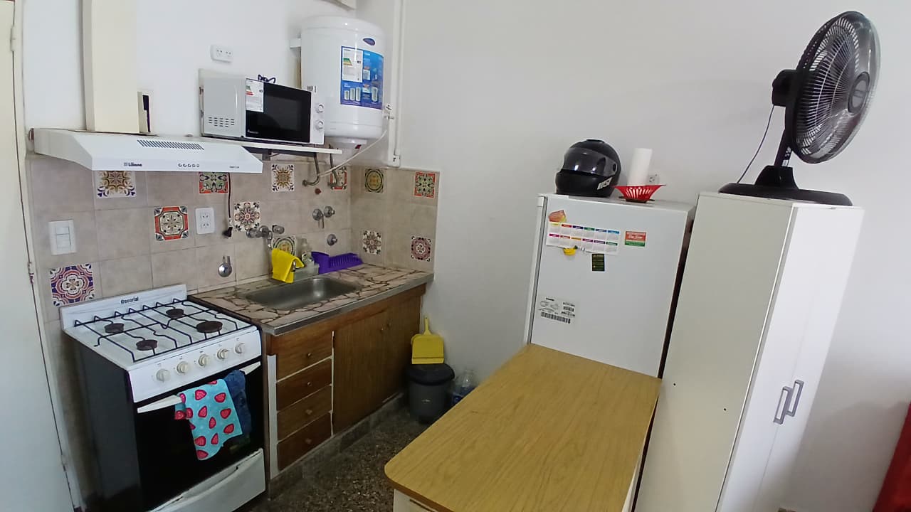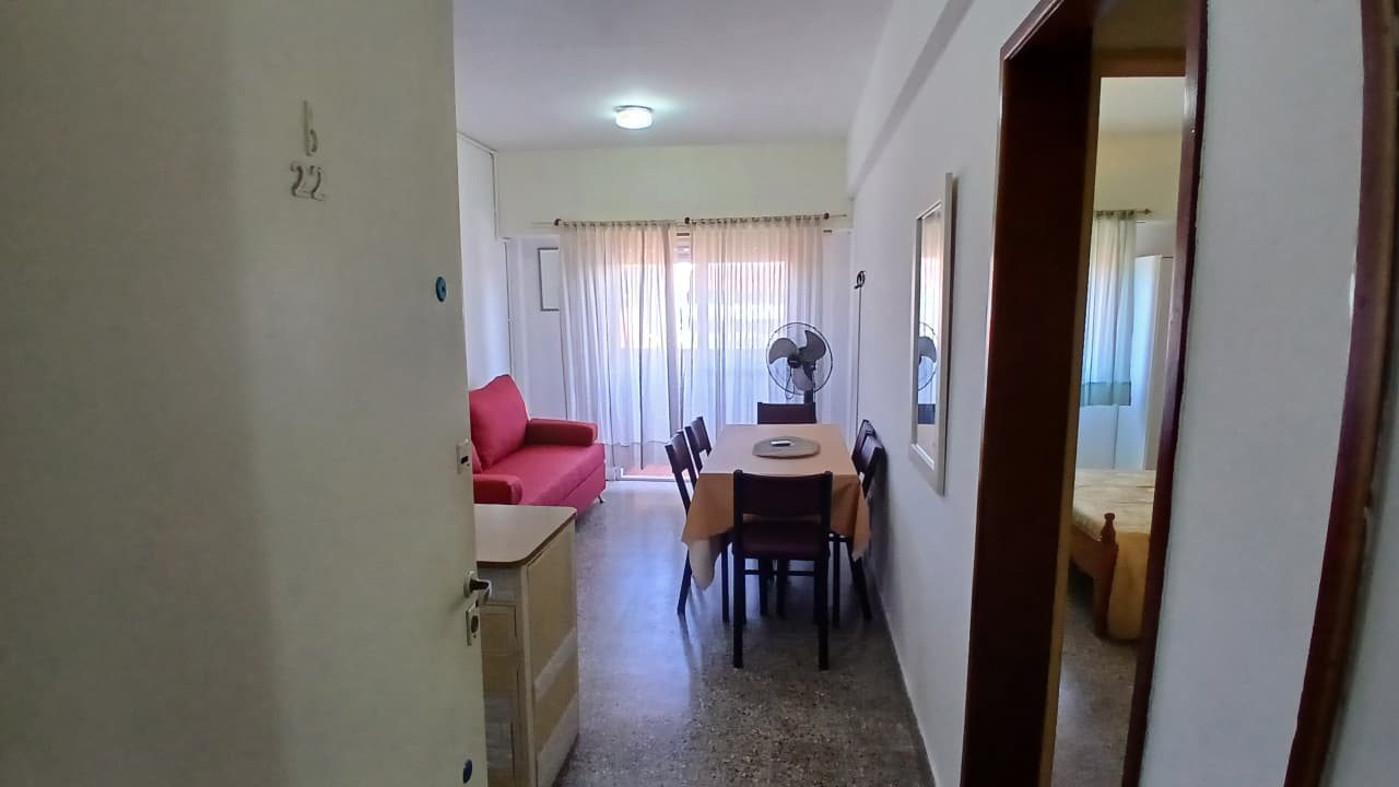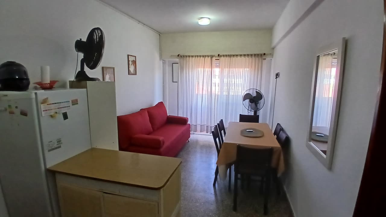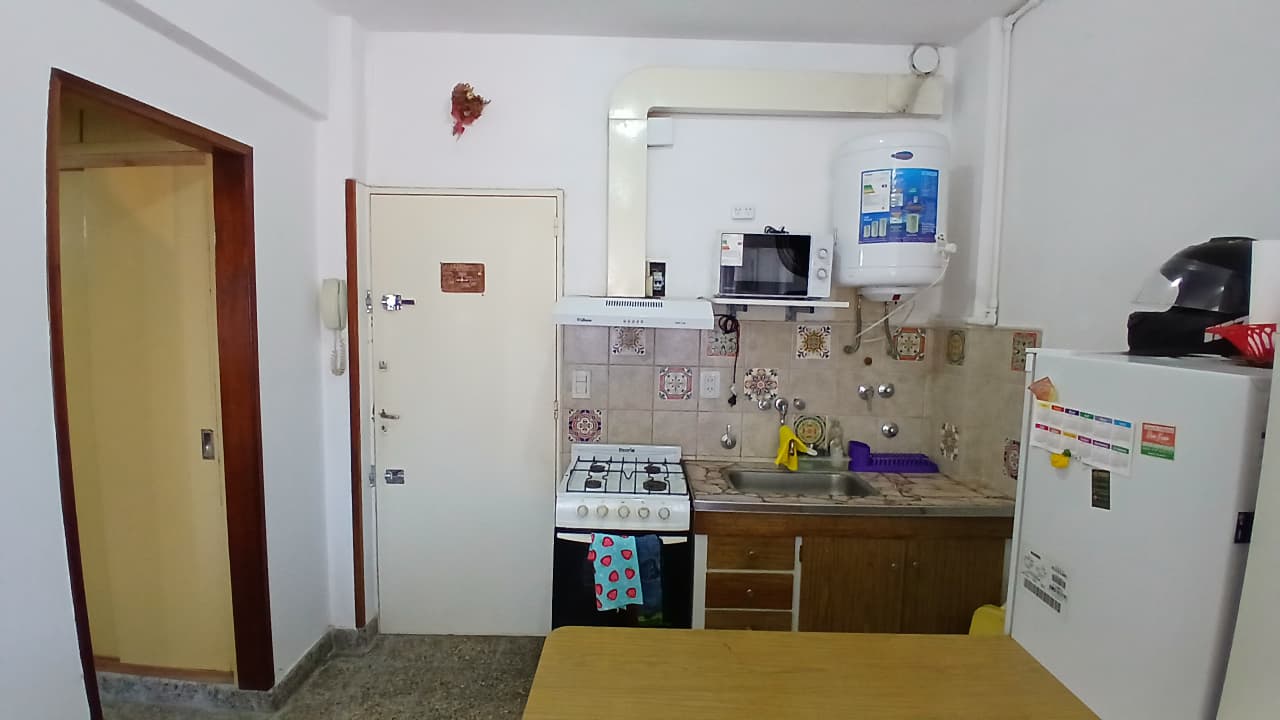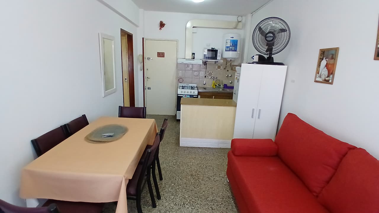 Ingresamos al edificio por medio de un hall de ingreso que nos recibe desde la vereda. La unidad se encuentra en 2do piso por escalera, donde accedemos por medio de una puerta de madera que nos dirige al living-comedor, cómodo, con la cocina integrada, separada con un mueble a media altura. La cocina se encuentra equipada con mesada simil mármol, con bacha de acero inoxidable, bajo mesada de madera, extractor de cocina y revestida en azulejos hasta 1,40 mts de altura. Por la derecha del ingreso, nos encontramos un pasillo distribuidor, aprovechado perfectamente con un mueble empotrado de guardado, el cual nos da acceso al baño completo, equipado con inodoro, bidet, lavamanos, ducha y se encuentra revestido en azulejos hasta 1,90 mts de altura; y por otra parte al único dormitorio, cómodo y luminoso, equipado con aire acondicionado. Por ultimo, desde el living-comedor, por medio de una ventana balcón, accedemos a un extenso balcon con vista a la calle. Ademas, el edificio cuenta con terraza compartida con vista al mar!