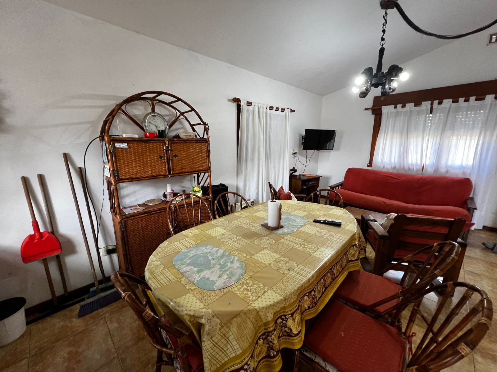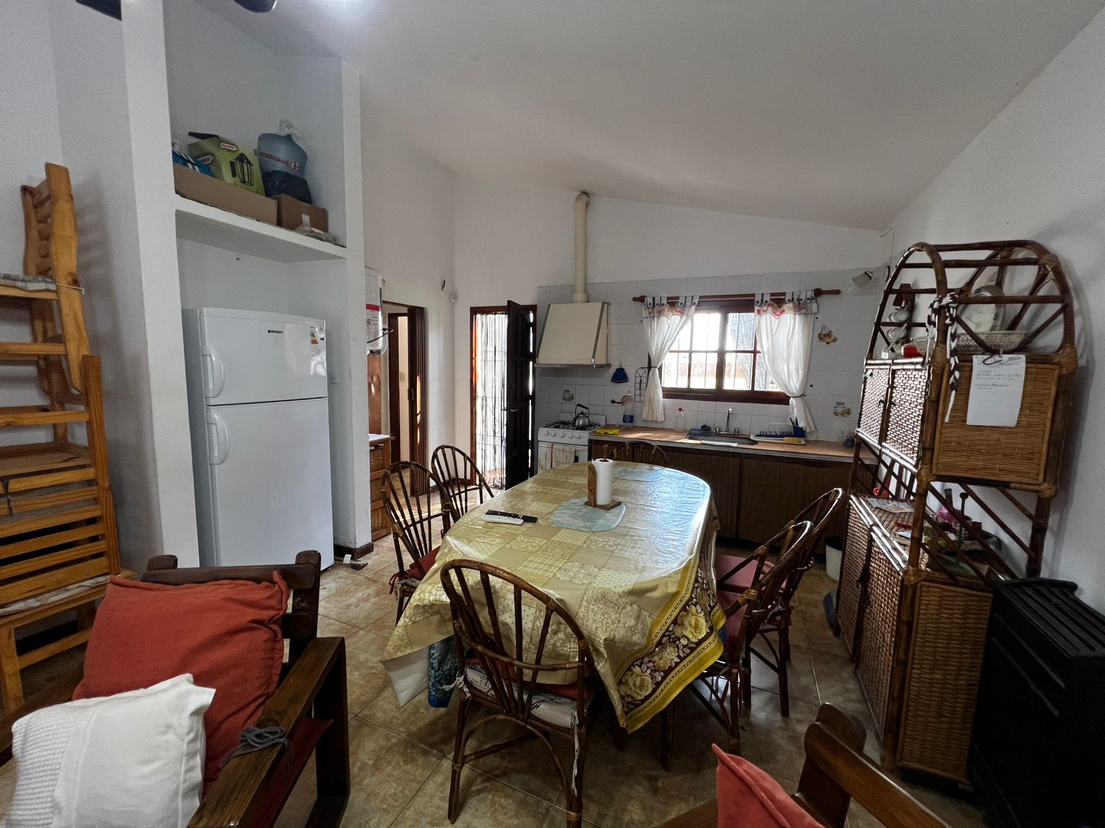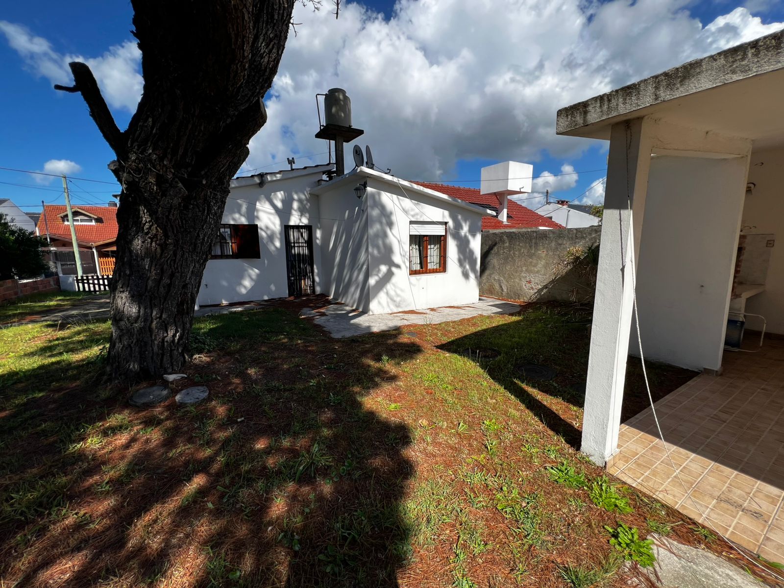 Casa de diseño tradicional, a la que ingresamos por medio de una puerta de madera, la cual nos da acceso al Living-comedor, iluminado naturalmente por ventanas que dan el frente y lateral derecho del lote. Seguido, nos encontramos con una cocina integrada, equipada con azulejos a 2 mts de altura, mesada de losa revestida con cerámicos, bacha de acero inoxidable, bajo mesada en melamina y vista hacia el fondo. Luego, por medio del estar-comedor, accedemos a un pasillo que conecta con un baño completo (equipado con pileta, bidet, inodoro y ducha) y dos habitaciones; una matrimonial, con vista al frente, y otra con vista al patio trasero. También, seguido del Living-comedor y la cocina, por medio de una circulación directa desde la puerta principal, accedemos a una puerta de madera que nos conduce hacia el fondo de la propiedad, en donde damos con un parque inmenso (producto del tamaño del lote) y un deposito separado de la construcción, el cual, a su vez cuenta con un semicubierto equipado con parrilla y pileta lavadero. Por el frente de la propiedad y del lado derecho del lote, encontramos el paso vehicular que dirige a un espacio descubierto para autos. La propiedad cuenta con techo de losa en pendiente, piso cerámico y paredes con terminaciones en revoque fino. Alarma y rejas en todas las aberturas. Excelente estado de conservación!