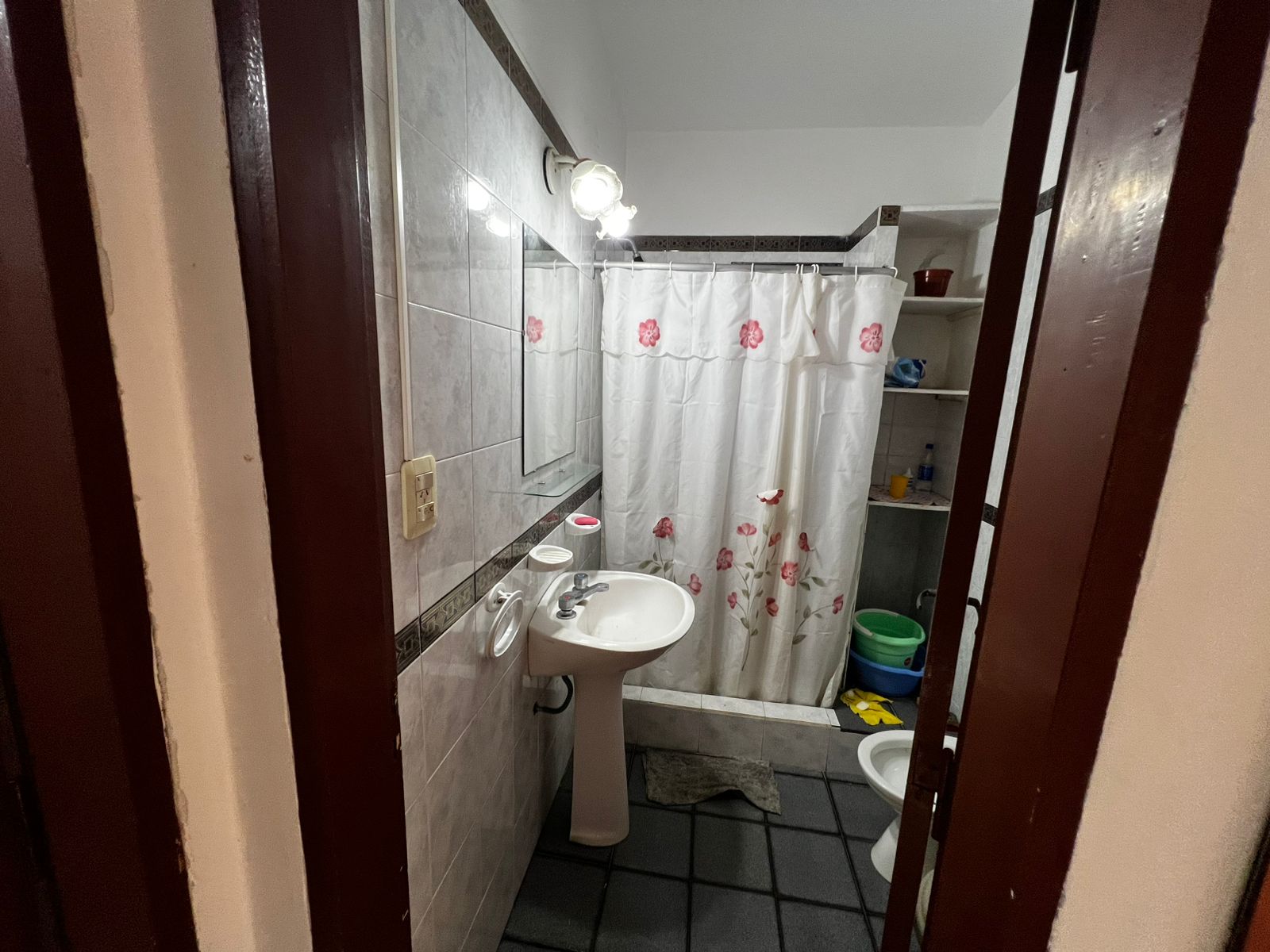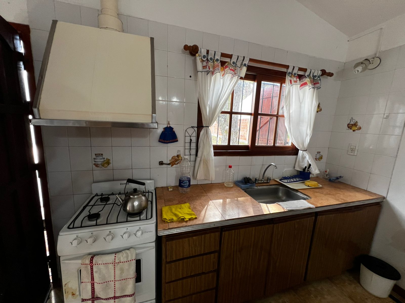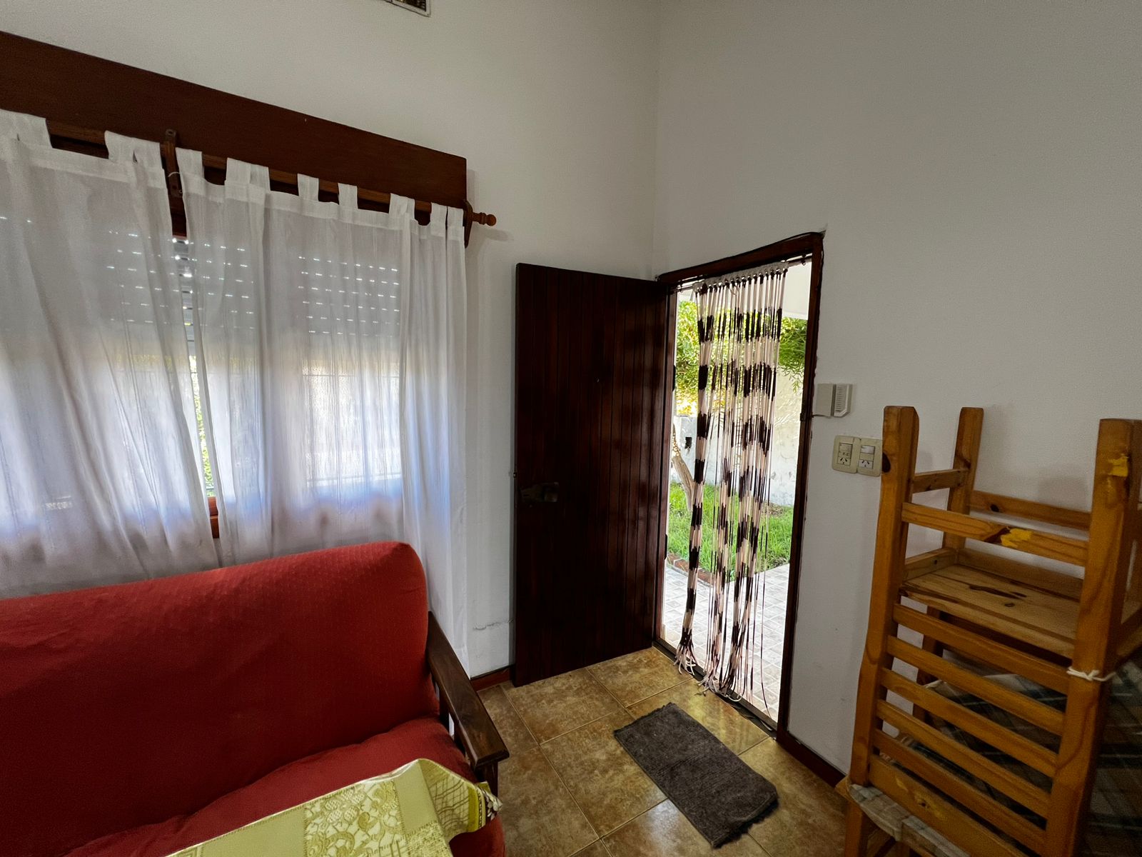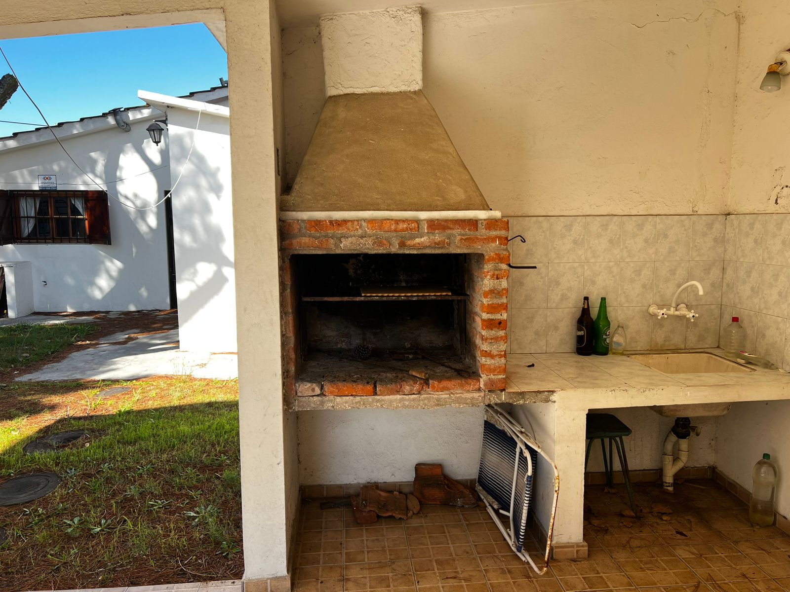 Casa de diseño tradicional, a la que ingresamos por medio de una puerta de madera, la cual nos da acceso al Living-comedor, iluminado naturalmente por ventanas que dan el frente y lateral derecho del lote. Seguido, nos encontramos con una cocina integrada, equipada con azulejos a 2 mts de altura, mesada de losa revestida con cerámicos, bacha de acero inoxidable, bajo mesada en melamina y vista hacia el fondo. Luego, por medio del estar-comedor, accedemos a un pasillo que conecta con un baño completo (equipado con pileta, bidet, inodoro y ducha) y dos habitaciones; una matrimonial, con vista al frente, y otra con vista al patio trasero. También, seguido del Living-comedor y la cocina, por medio de una circulación directa desde la puerta principal, accedemos a una puerta de madera que nos conduce hacia el fondo de la propiedad, en donde damos con un parque inmenso (producto del tamaño del lote) y un deposito separado de la construcción, el cual, a su vez cuenta con un semicubierto equipado con parrilla y pileta lavadero. Por el frente de la propiedad y del lado derecho del lote, encontramos el paso vehicular que dirige a un espacio descubierto para autos. La propiedad cuenta con techo de losa en pendiente, piso cerámico y paredes con terminaciones en revoque fino. Alarma y rejas en todas las aberturas. Excelente estado de conservación!