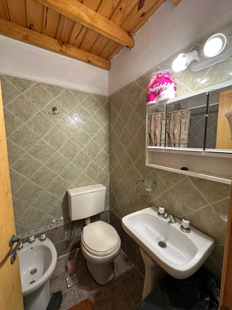 A la izquierda del living comedor se destaca un empapelado símil ladrillo a la vista que le aporta un toque cálido a la propiedad, mientras que el resto de los interiores se encuentran pintados en color blanco. En planta baja, a la izquierda de la cocina, se ubica un baño completo revestido con azulejos en tono verde cristal hasta un metro de altura y luego en tonalidad gris hasta los dos metros.