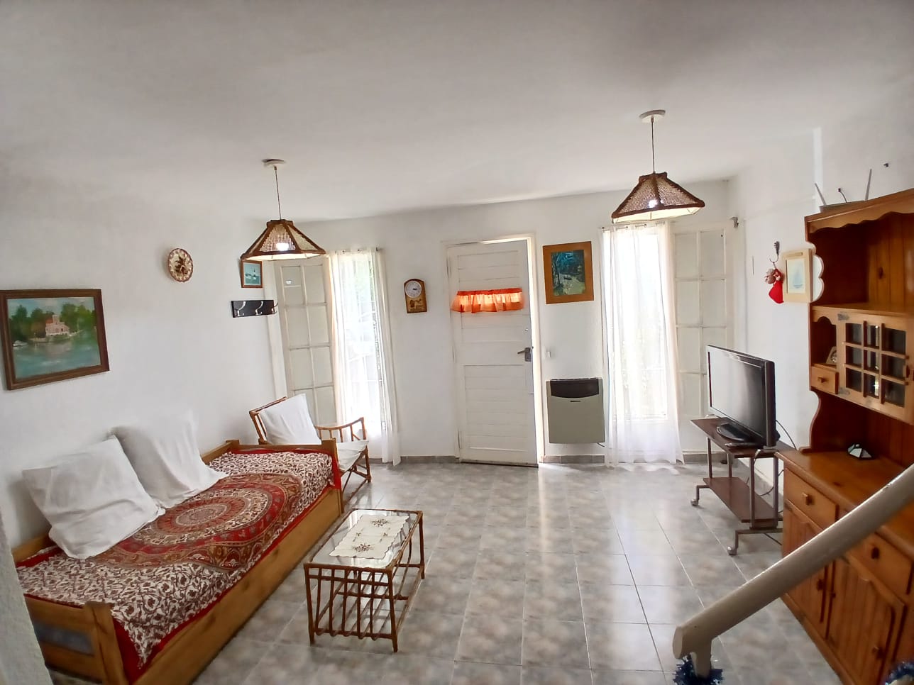 Dúplex de 3 ambientes al frente. Consta de living-comedor con un sillon cama con carrito, cocina integrada, 2 dormitorios cerrados en 1er piso, uno con una cama matrimonial y otro con una cama de una plaza, baño completo en PA y toilette en PB, patio con parrilla y lavadero de ambiente cerrado. Cuenta con 1 TV con cable y Wi-FI recargable, heladera con freezer, microondas, 2 ventiladores, entrada vehicular descubierta y gas envasado (a cargo inq). No acepta mascota.